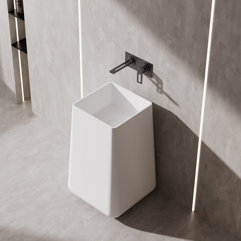 Steen Hars Wastafel Oppervlak Steen Moderne Stijl Matwitte Badkamer Wastafel Op Voorraad